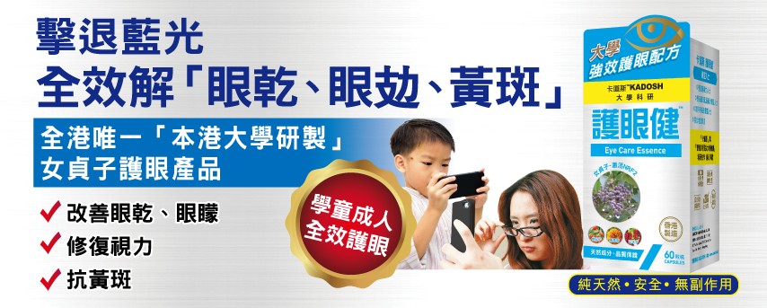 本港學童及成人手機不離手,近月受疫情影響,因網上教學及居家時間長,市民每日使用電子產品的時間暴增,令眼睛疲勞不適,及視力退化等原有問題急據惡化。「本港權威大學」研究證實,新突破草本成份「女貞子」有效阻隔藍光,能激活自身修復受損眼細胞,全面修復視力,改善眼乾、眼矇,並且具抗黃斑功效;「本港權威大學」與「本港大學中藥研究院」及商界「卡道斯公司」3方合作,將複方研發成「卡道斯™護眼健」,致力保護全港學童及市民視力,提升眼部健康。